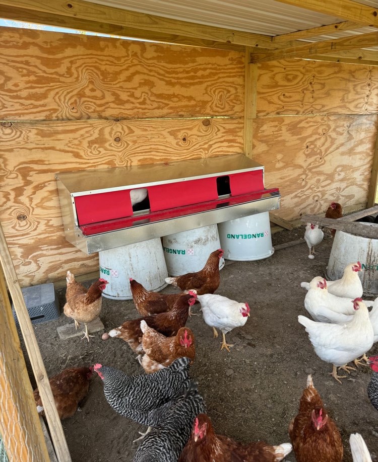 The chickens available are: Rhode Island Red, Australorp, Leghorn, Orpington, Plymouth Rock, Golden Comet, Ameraucana, ISA Brown