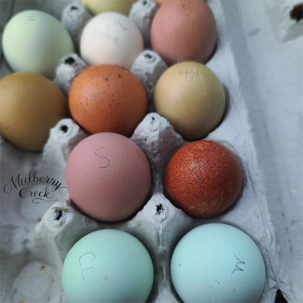 NOTE: When ordering these you will receive multi colored eggs, brown, blue, and green. Only your legbars and marans will lay the same color egg as they hatch from. (as pictured)